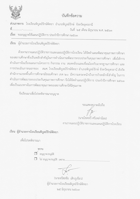 บันทึกข้อความเสนอผู้อำนวยการโรงเรียน