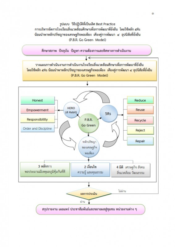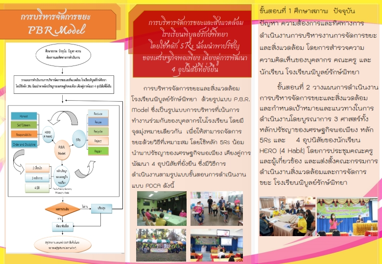 การบริหารจัดการโรงเรียนสิ่งแวดล้อมศึกษาเพื่อการพัฒนาที่ยั่งยืน โดยใช้หลัก ๕Rs น้อมนำพาหลักปรัชญาของเศรษฐกิจพอเพียง เคียงคู่การพัฒนา ๔ อุปนิสัยที่ยั่งยืน(P.B.R. Go Green Model)