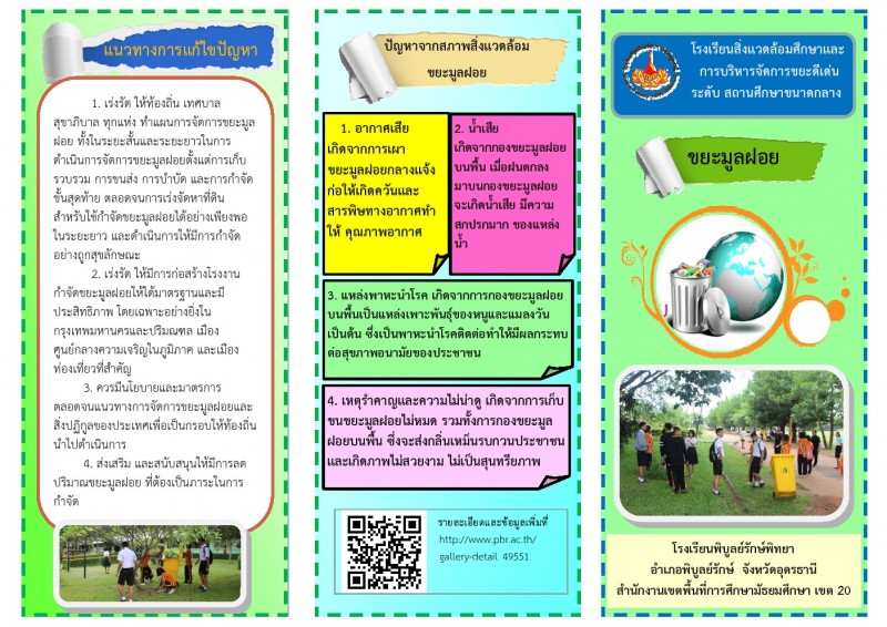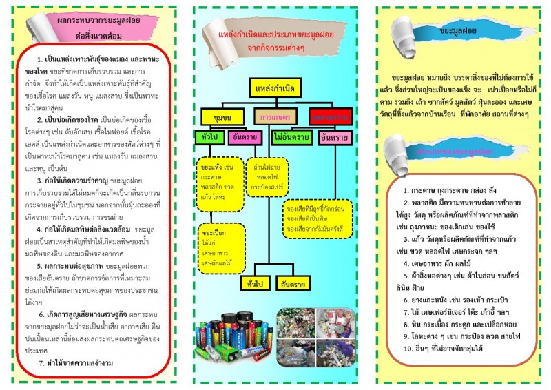 ขยะมูลฝอยเป็นสาเหตุสำคัญที่ทำให้เกิดมลพิษของน้ำ มลพิษของดิน และมลพิษของอากาศ