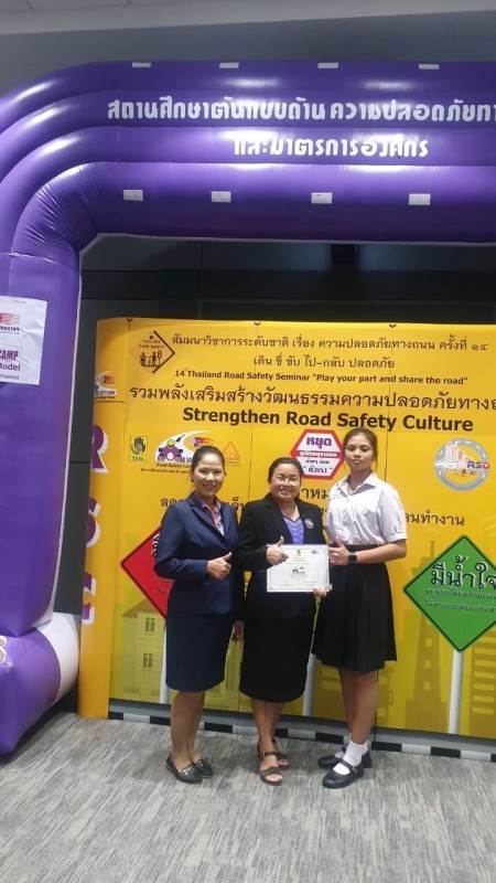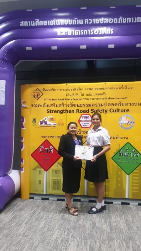 รับมอบเกียรติบัตร สถานศึกษาต้นแบบด้านความปลอดภัยทางถนน